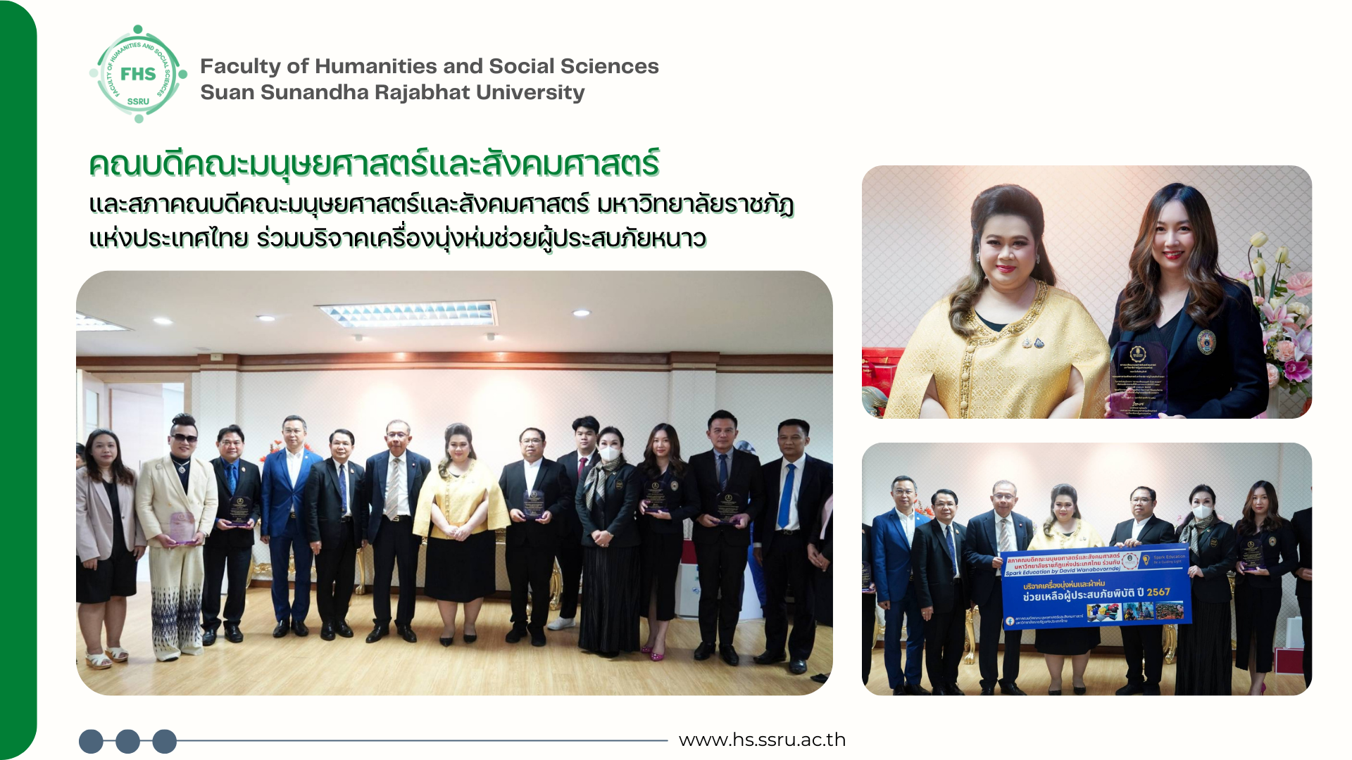 คณบดีคณะมนุษยศาสตร์และสังคมศาสตร์ และสภาคณบดีคณะมนุษยศาสตร์และสังคมศาสตร์ มหาวิทยาลัยราชภัฏแห่งประเทศไทย ร่วมบริจาคเครื่องนุ่งห่มช่วยผู้ประสบภัยหนาว