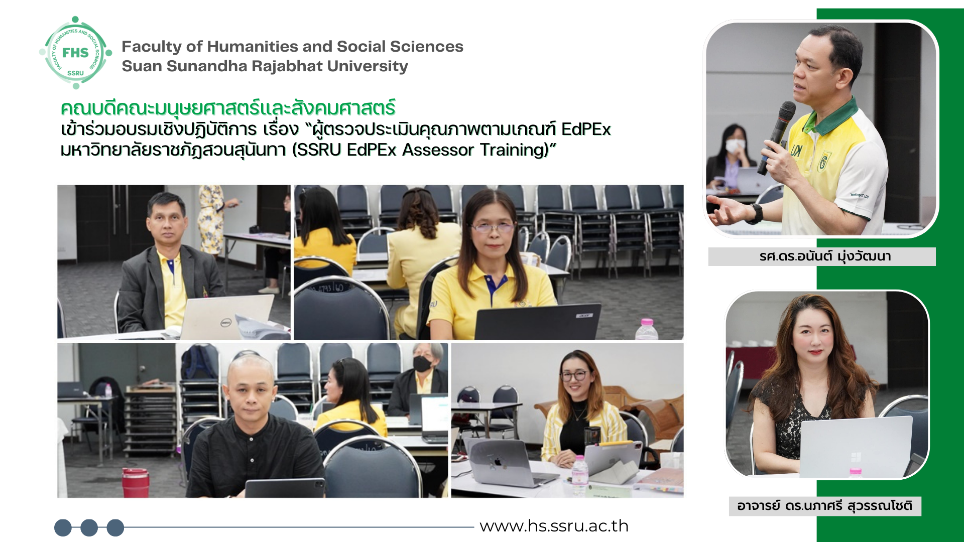 คณบดีคณะมยุษยศาสตร์และสังคมศาสตร์ เข้าร่วมอบรมเชิงปฏิบัติการ เรื่อง “ผู้ตรวจประเมินคุณภาพตามเกณฑ์ EdPEx มหาวิทยาลัยราชภัฏสวนสุนันทา (SSRU EdPEx Assessor Training)”