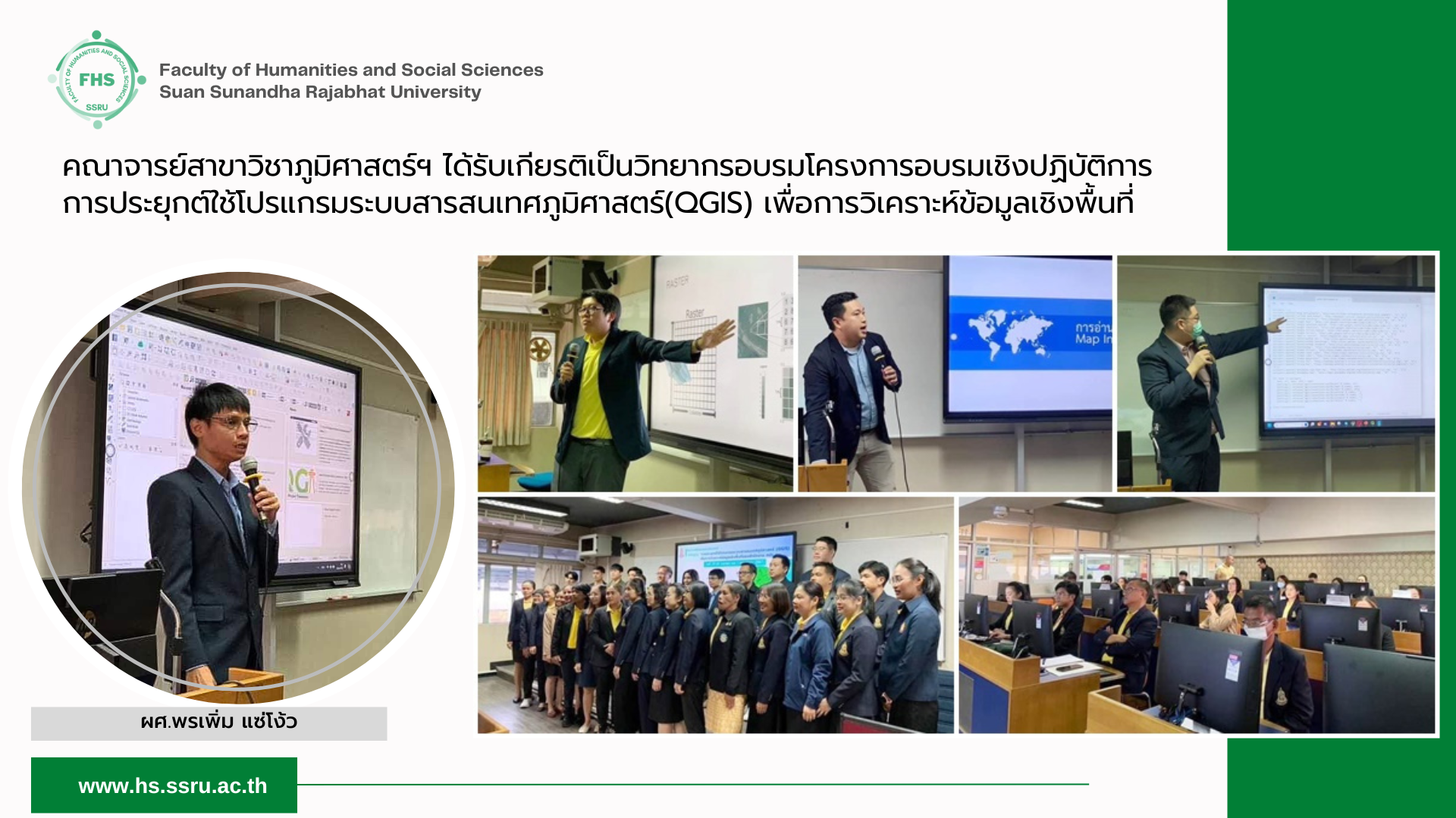 คณาจารย์สาขาวิชาภูมิศาสตร์ฯ ได้รับเกียรติเป็นวิทยากรอบรมโครงการอบรมเชิงปฏิบัติการการประยุกต์ใช้โปรแกรมระบบสารสนเทศภูมิศาสตร์(QGIS)เพื่อการวิเคราะห์ข้อมูลเชิงพื้นที่