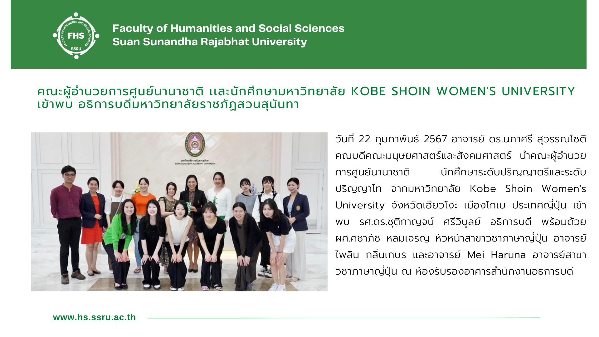 คณะผู้อำนวยการศูนย์นานาชาติ เเละนักศึกษามหาวิทยาลัย Kobe Shoin Women's University เข้าพบ อธิการบดีมหาวิทยาลัยราชภัฏสวนสุนันทา