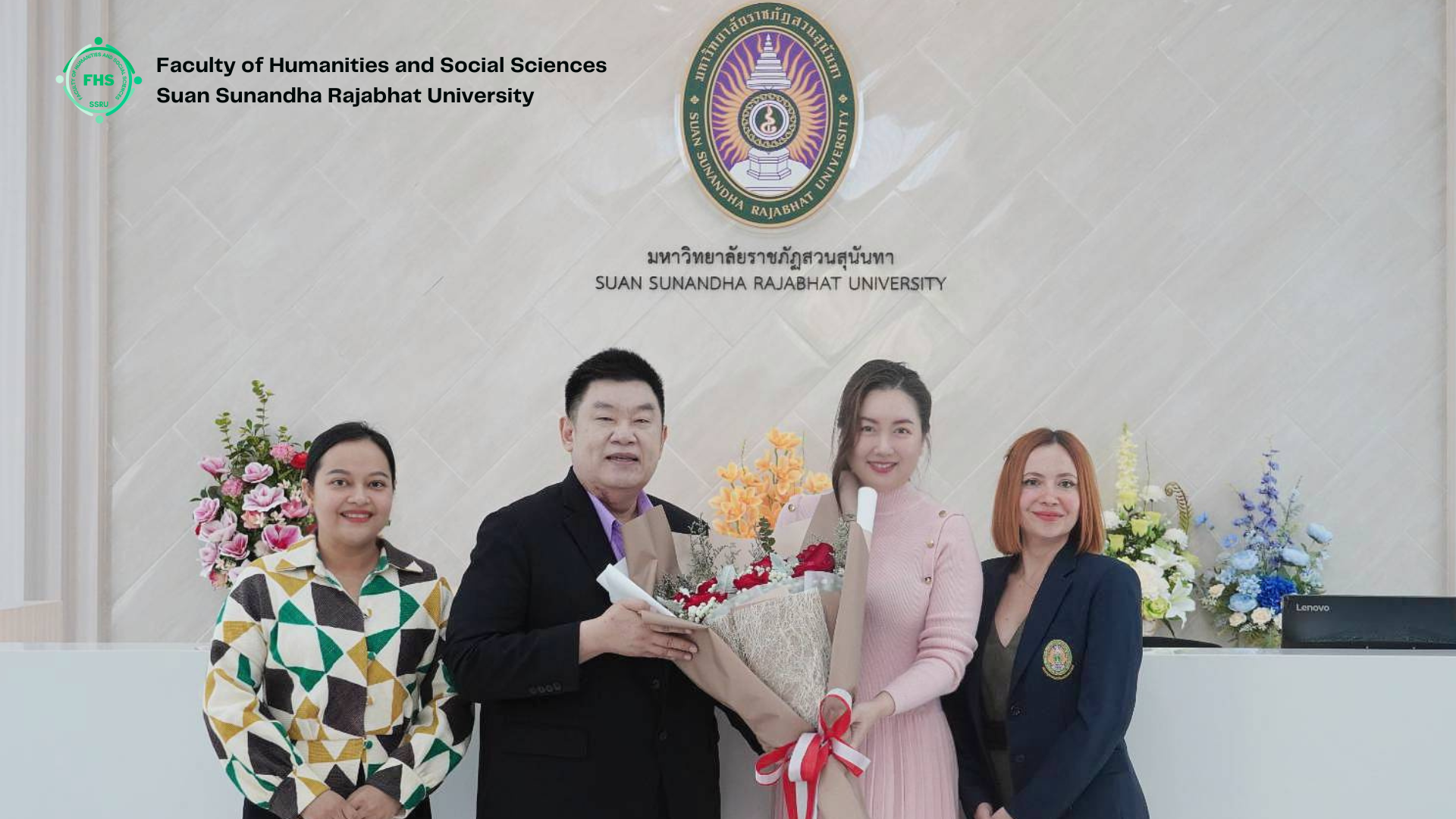 วันที่ 16 ธันวาคม 2567 อาจารย์ ดร.นภาศรี สุวรรณโชติ คณบดีคณะมนุษยศาสตร์และสังคมศาสตร์ มหาวิทยาลัยราชภัฏสวนสุนันทา พร้อมด้วย ผู้ช่วยศาสตราจารย์ ดร.จิราภรณ์ อัจฉริยะประสิทธิ์ รองคณบดีฝ่ายกิจการนักศึกษา และ Dr. Melisa Aysegul Cal Yumusak อาจารย์ประจำสาขาวิชาภาษาอังกฤษ ร่วมมอบช่อดอกไม้แสดงยินดีแก่ รองศาสตราจารย์ ดร.บัณฑิต ผังนิรันดร์ ในโอกาสได้รับการแต่งตั้งให้ดำรงตำแหน่ง “รองอธิการบดีฝ่ายพัฒนาธุรกิจและจัดหารายได้” ณ ห้องรับรอง ชั้น 1 อาคารสำนักงานอธิการบดี มหาวิทยาลัยราชภัฏสวนสุนันทา